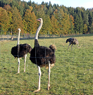 200 Strausse leben auf dem Eberle-Hof und unter den Straussenfarmen in der Schweiz hat Eberle sich zum Referenzbetrieb entwickelt. Der Bauer hat seinen Weg, gesunde Tiere und damit auch schmackhaftes Fleisch zu produzieren, längst gefunden. Herkömmliche Medikamente benutzt er nicht mehr. Neben den Straussen leben auch noch 160 Rinder, 10 Galloway-Rinder und 30 Truten auf dem 20 Hektaren grossen IP-Hof und um die 1'000 Mostobstbäume müssen gepflegt werden. Das Fleisch seiner Tiere vermarktet er direkt, unterhält einen Hofladen und bietet einen Partyservice an. Wertschöpfung selber in der Hand Auch wenn Eberles zu Beginn ihrer Straussenzucht auch mal belächelt wurden, sind sie heute stolz auf das Erreichte. Der Erfolg gibt ihnen recht, sie haben eine Marktlücke entdeckt und je mehr die Konsumenten von Fleischskandalen rund um den Globus erfahren, je länger je mehr suchen sie das Nahrungsmittel vom Produzenten, den sie persönlich kennen, sagt Eberle. Zudem gelte in der Schweiz seit dem erneuten Ausbruch der Vogelgrippe im Jahr 2011 ein Importverbot für Straussenfleisch aus dem wichtigstem Importland Südafrika. Deshalb setzt Cornel Eberle heute um die fünf Tonnen Straussenfleisch ab.