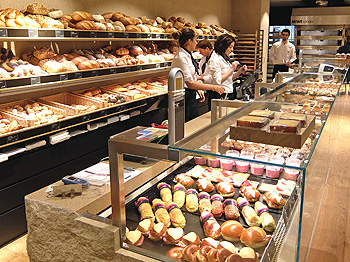 Über die Schulter eines Bäckers schaut der Kunde bei der Bäckerei Buchmann. In der grossen Schaubäckerei wird vor Ort produziert, hier kann der Kunde das Brot direkt aus dem Ofen kaufen. Fleischspezialitäten stammen weiterhin von der Schweizer Traditionsmetzgerei Kauffmann. La Peppina entführt die Besucher in die kulinarische Welt Italiens und Sushi von Nippon markiert japanische Gourmetkompetenz mit rohen Fischen. In einem gemütlichen Weinkeller mit den besten Weinen aus aller Welt wähnt sich der Kunde bei Mövenpick Wein.